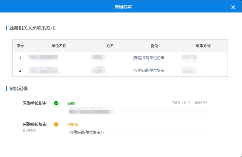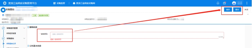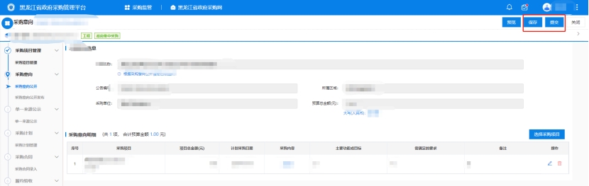 3、保存之后,點擊提交按鈕,流程將流轉(zhuǎn)到采購單位審核人,進行意向公開審核操作。