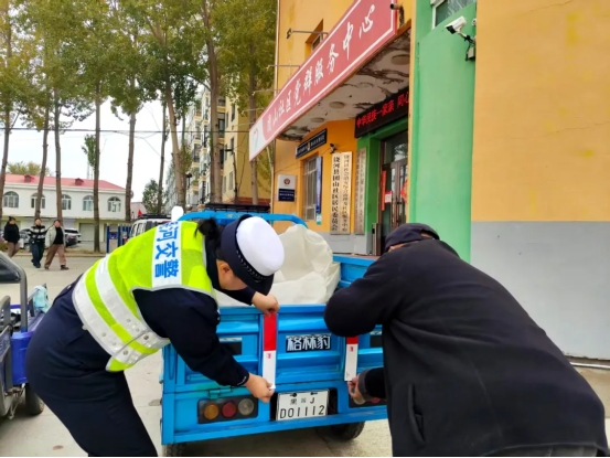 民警在走訪中發(fā)現(xiàn),許多老年人代步使用的電動三輪車、人力三輪車缺少必要的安全反光裝置,在黎明、黃昏或夜間光線不佳的條件下行駛存在隱患風險。為此,民輔警隨身攜帶反光標識貼,現(xiàn)場為老人們停放的車輛進行免費粘貼,叮囑老人“被看見,才安全”。